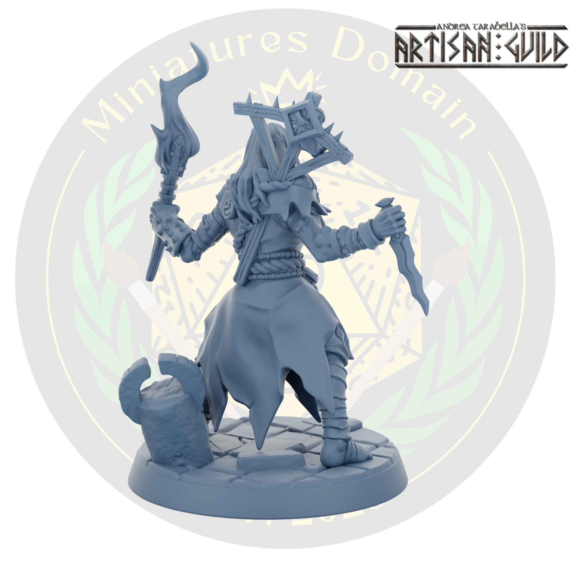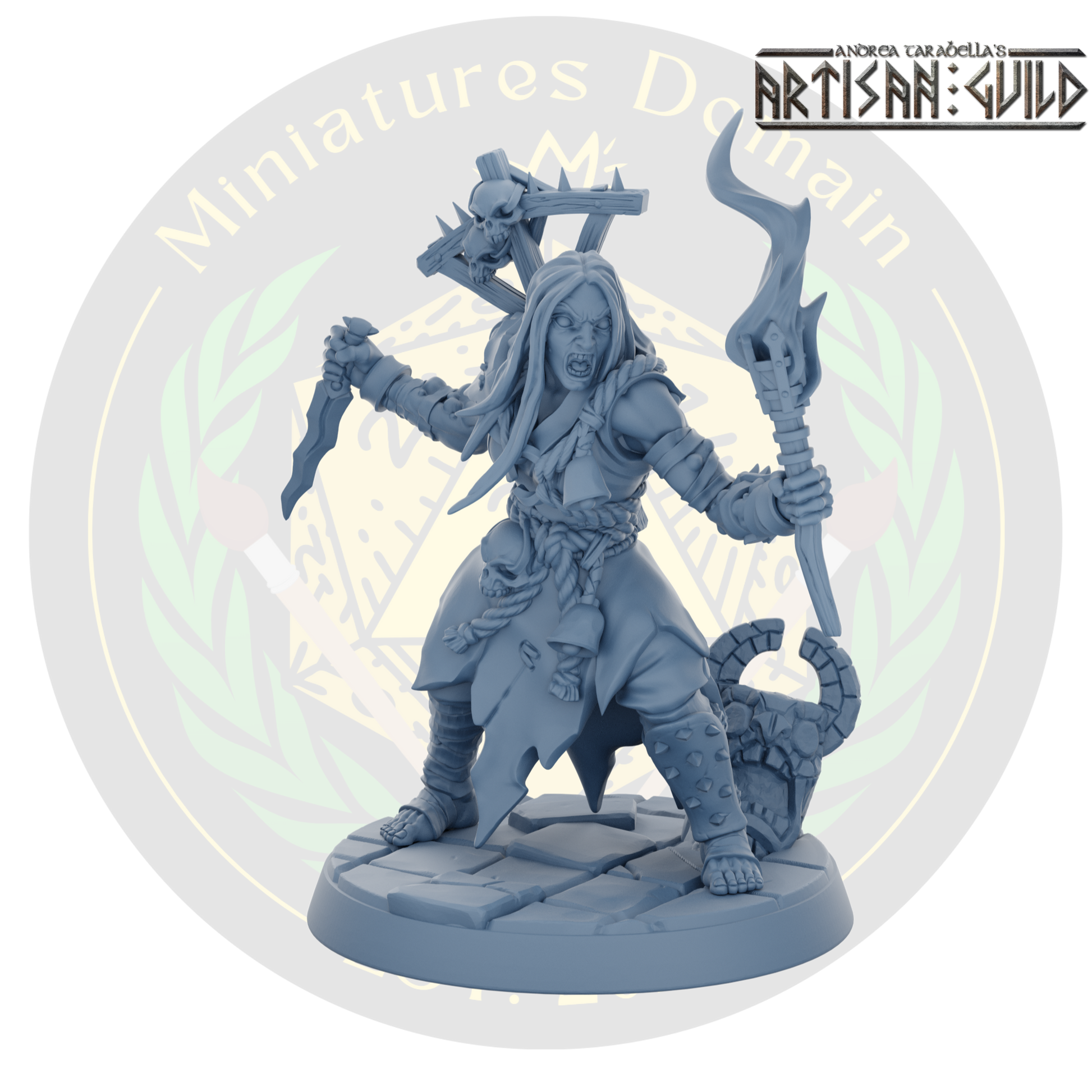 Female Cultist of Melmora with a dagger and a torch